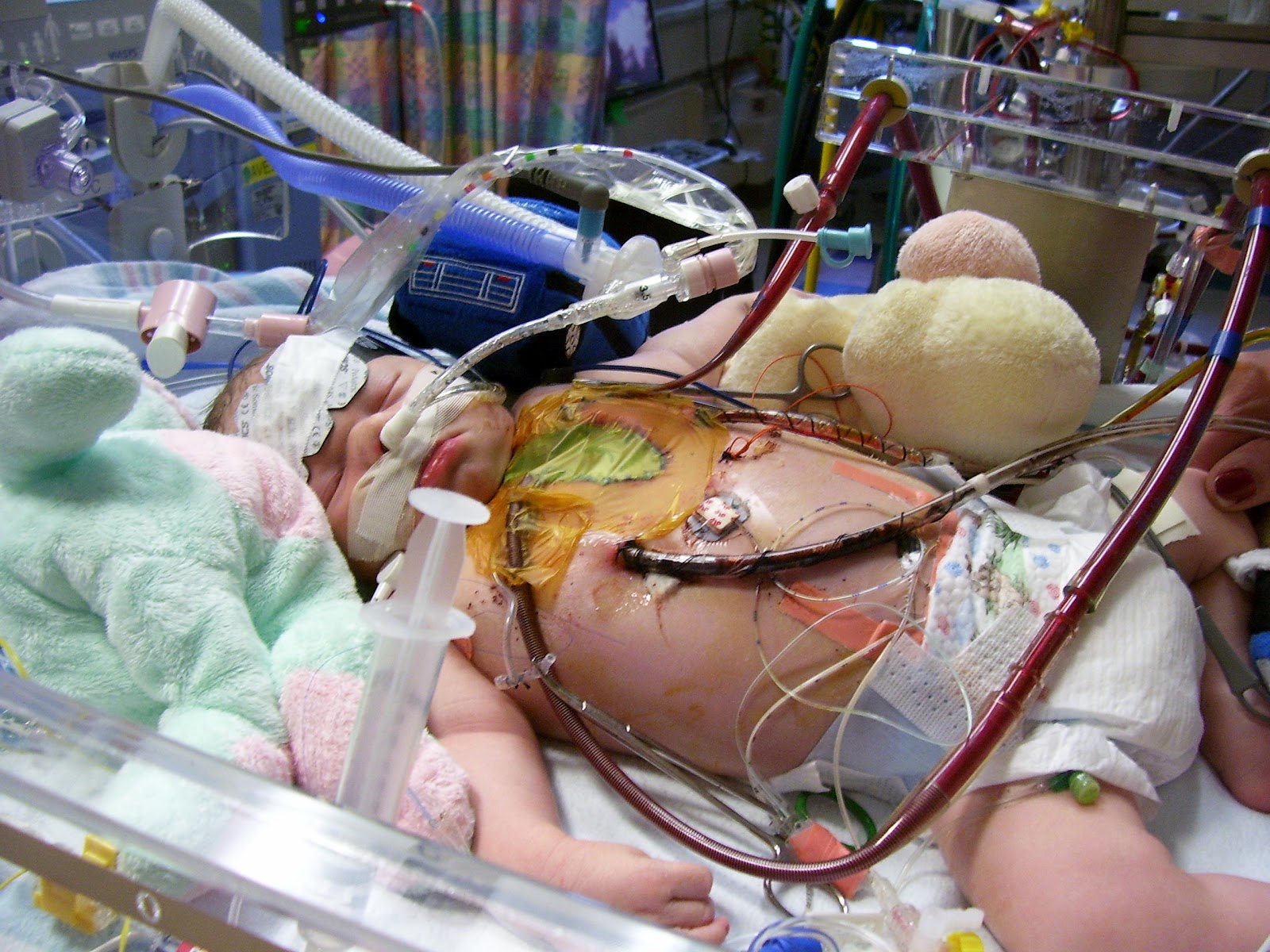 In the conference room we were told that he has gone into cardiac arrest. For twenty minutes our cardiothoracic surgeon massaged his tiny heart in his hand until it beat again. He was immediately placed on ECHMO (heart lung bi-pass machine). This machine would circulate blood through an artificial lung back into the bloodstream, providing adequate oxygen giving his heart a chance to “rest.” We were told that he should remain on this for a few